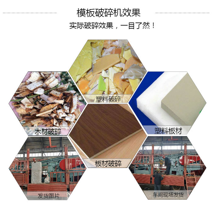 【處理物料】: 廣泛適用于建筑上的各種帶釘子或帶鐵的模板、廢舊的木材、包裝箱、木質(zhì)集裝箱、木托盤(pán)等一些帶有鐵器物質(zhì)的建筑模板、塑膠板的粉碎加工
